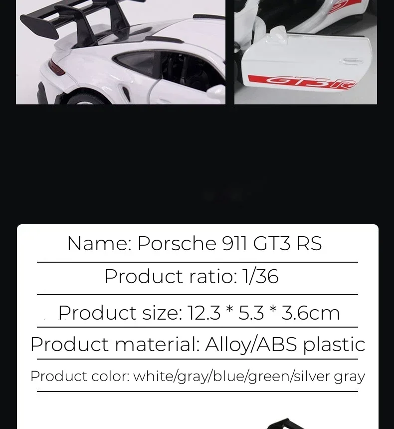 Porsche 911 GT3 RS - Miniatura em Liga metálica -Escala: 1:36 - Die Cast - Coleção Pull Back